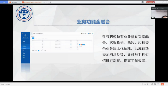 百余家高校老师齐聚一堂,广东外语外贸大学杨欣老师、大连理工大学周学飞老师、哈尔滨工程大学赵琳琳老师、博达融媒体事业部总经理杜鑫以饱满的精神状态与百余名参会老师进行线上互动交流,就高校融媒体建设及发展展开高水准对话。
