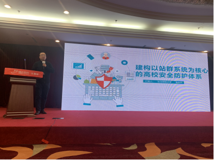 报告主题为《建构以站群系统为核心的高校网络安全防护体系》,探讨如何从网站群的管理、边界防护、数据备份、日志审计、安全治理等几个方面来保障高校的信息安全。