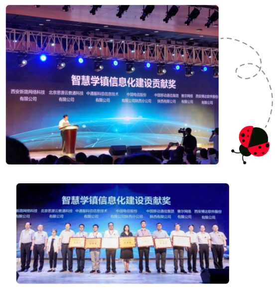 西安博达软件股份有限公司荣获智慧学镇信息化建设贡献奖,董事长魏总上台领奖。