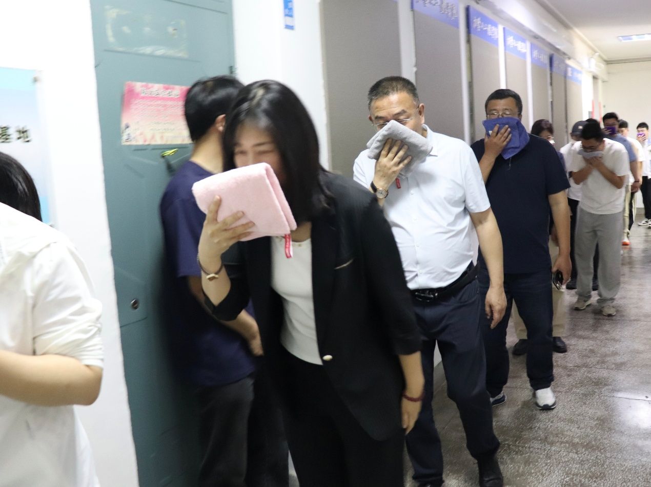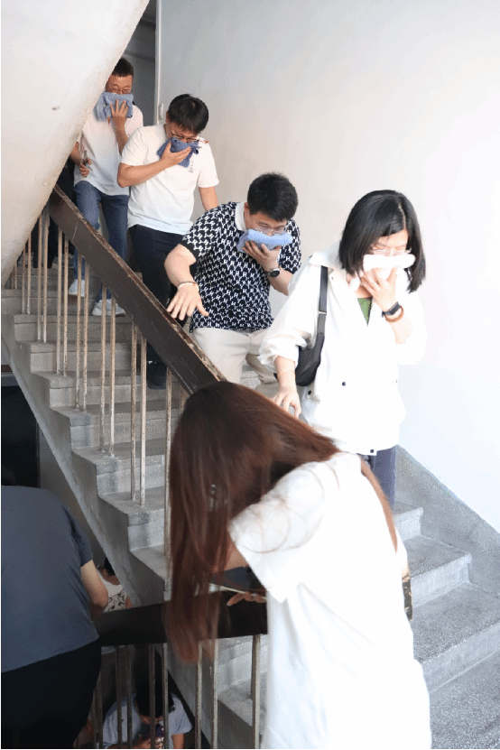 应急疏散环节,黄轶铂老师为师生讲解应急逃生方法,强调在火灾发生时,要用湿毛巾捂住口鼻,低姿前行,按照疏散指示标志的方向迅速撤离。随后,全体师生在建业楼模拟应急疏散进行了逃生演练,整个演练过程紧张有序,达到了预期效果。