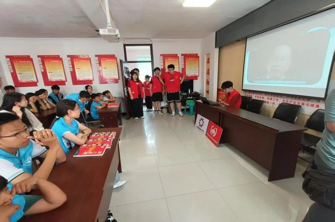 在大众社区,工力24-1班宣讲员以李大钊“赤旗世界”的呐喊开篇,串联伟大建党精神。张桂梅托举山区女孩的故事,令党员王阿姨动容:“这就是‘不负人民’!”。革命烽火与新时代抗洪抗疫的影像交织,诠释不变的担当。社区养老中心、垃圾分类设施,成为“增进民生福祉”的生动注脚。强民社区里,理力23-1班“红韵少年行”实践团队则为孩子们讲述中国共产党人精神图谱:科学家的孜孜探索、铁人王进喜“拼命拿下大油田”的豪情、沂蒙人民“最后一口粮做军粮”的奉献,在孩子心中种下红色的种子。