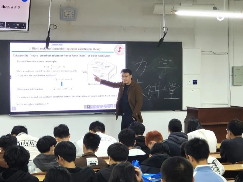 王凯兴老师做了以《矿山灾害力学研究》为题的报告。向同学们讲述了煤岩冲击灾害的动力破坏机理、冲击地压灾害防治的能量转换原理与支护技术等不同的学术研究方向,详细阐述了不同研究方向的关键科学问题以及研究特色。并根据其个人研究,讲解了不同研究方向的成果和创新,以及这些方面的研究成果在不同条件的矿坑中的实际应用。在活动的最后,王老师又和同学们交流了其参与组建中俄联合深地开采创新中心和研发冲击地压巷道全寿命健康监测项目上取得的成果和未来规划。