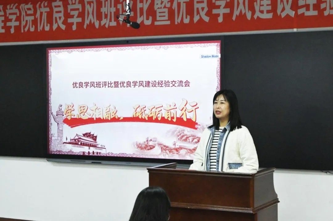 各班汇报结束后,王丽宏副书记进行点评发言。她对各班级的精彩表现给予充分肯定,指出班级成绩的取得,离不开每一位班级成员的辛勤付出,更离不开班导师、辅导员老师的悉心指导,向为班级建设付出努力的师生表示感谢。她强调这次评比活动不仅是对过去一年各班级工作成果的全面检阅,更是一次对海角视频