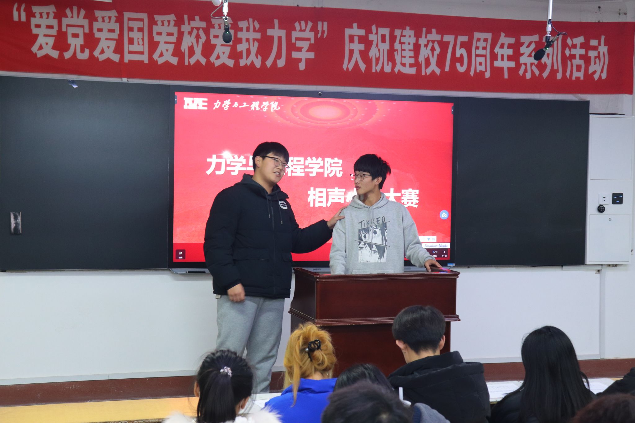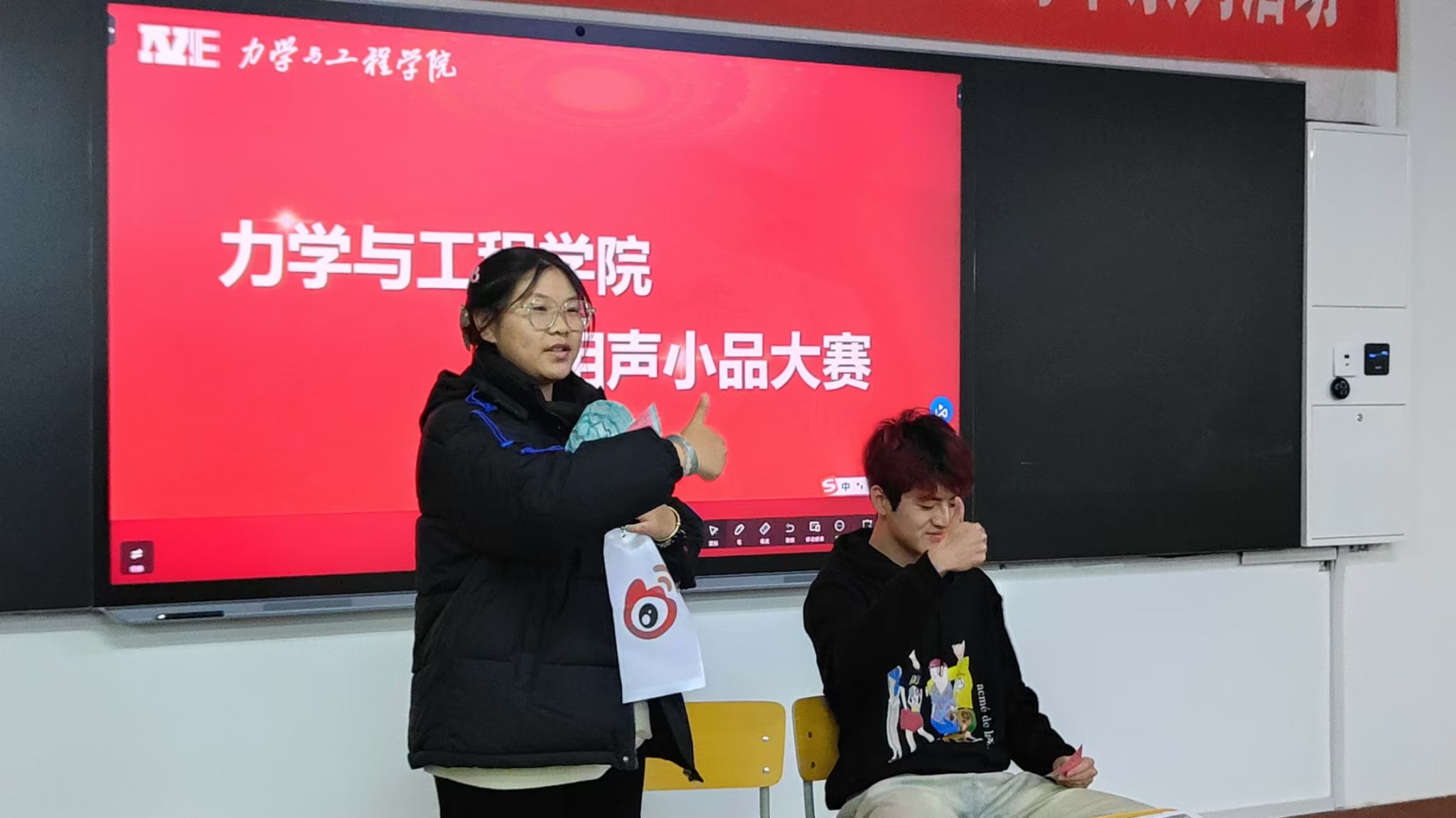 在新华楼208教室举行了一场别开生面的相声小品大赛。本次大赛历时一个月,经过班级组队、初赛演绎的层层选拔,共有9组选手站在了决赛的舞台。同学们用搞笑又温情的故事在给大家带来欢乐的同时传递了积极向上的力量,树立了正确的价值观。
