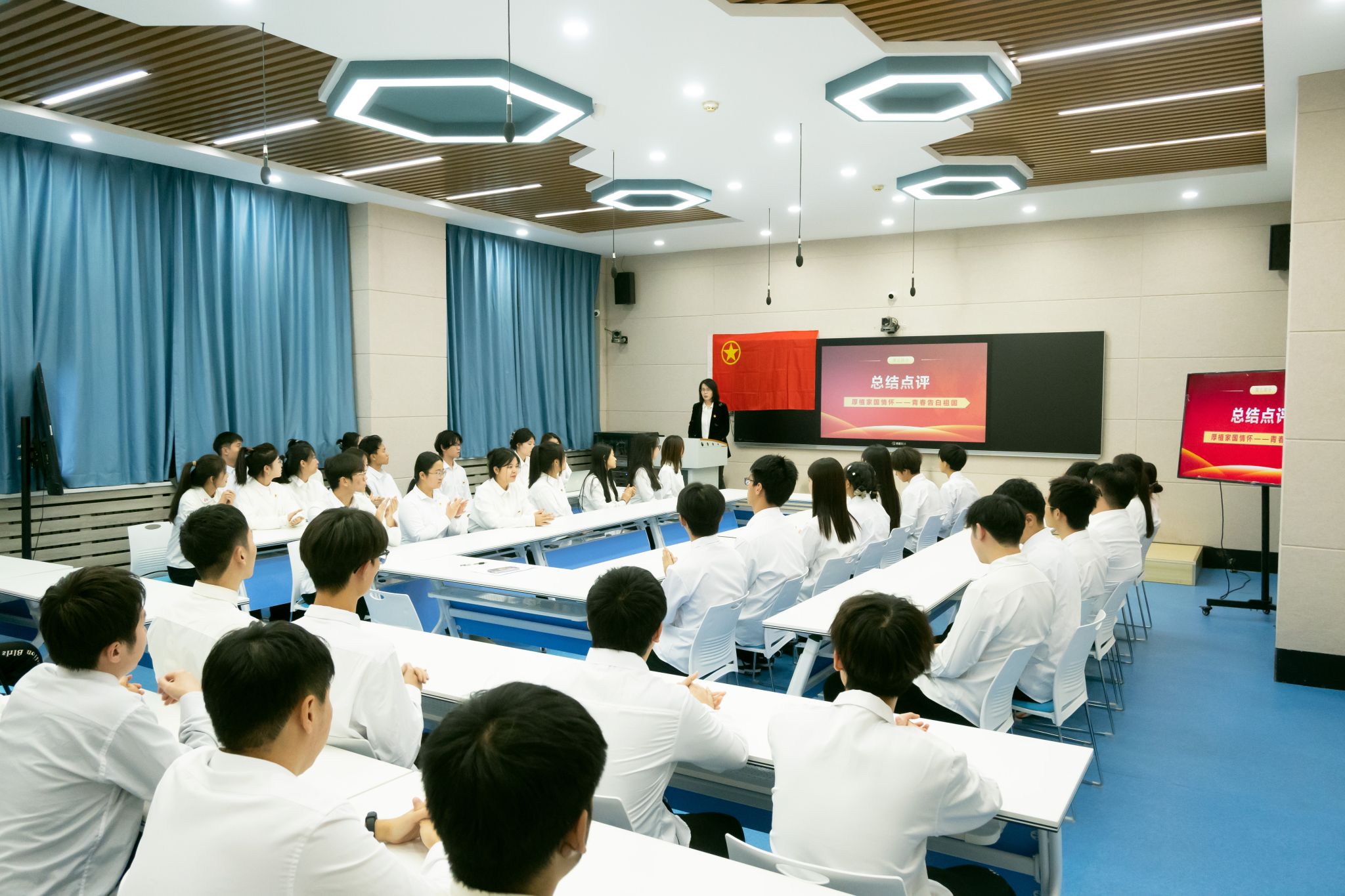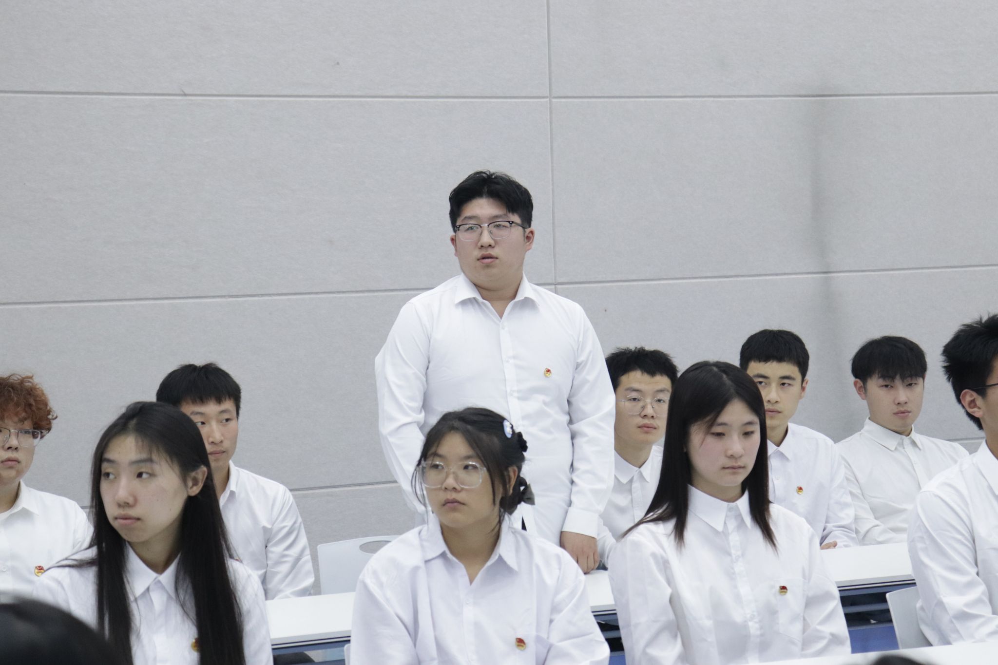 “我爱你中国,亲爱的母亲”,歌曲《我爱你中国》的悠扬合唱将现场气氛推向高潮。今年是新中国成立75周年,红军长征出发90周年,同学们用这首歌曲表达新时代青年对祖国的热爱和祝福,合唱同学们身姿挺拔、目光坚定、歌声嘹亮且富有感染力,将歌唱与手势舞两种表演形式相结合,以诚挚的情感、饱满的热情和优美的歌声,传达了自己内心的自豪感和责任感,全场气氛隆重而热烈。最后,所有团员面向团旗,举起右手,重温入团誓词,本次团日活动在庄严而洪亮的宣誓声中圆满落下帷幕。团委书记解书华老师在总结讲话中指出,广大团员作为青年一代,要坚定理想信念,勇于担当作为,练就过硬本领,用青春和热血书写中华民族伟大复兴的壮丽篇章。