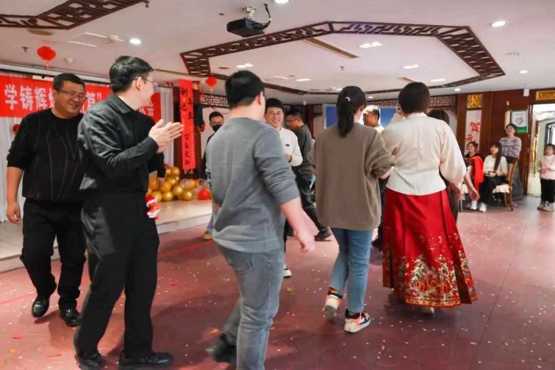 联欢会节目内容丰富多样,教职工纷纷登台献艺,有旋律悠扬、情感丰富的歌曲,有深情款款、轻盈飘逸的舞蹈,有诙谐幽默、令人捧腹的三句半,也有歌声悠扬的合唱。联欢会还精心设置了5轮游戏和5轮幸运抽奖环节,特邀嘉宾为教职工颁发丰厚的礼品。现场欢呼与惊喜交织回荡,将联欢会的氛围推向高潮。