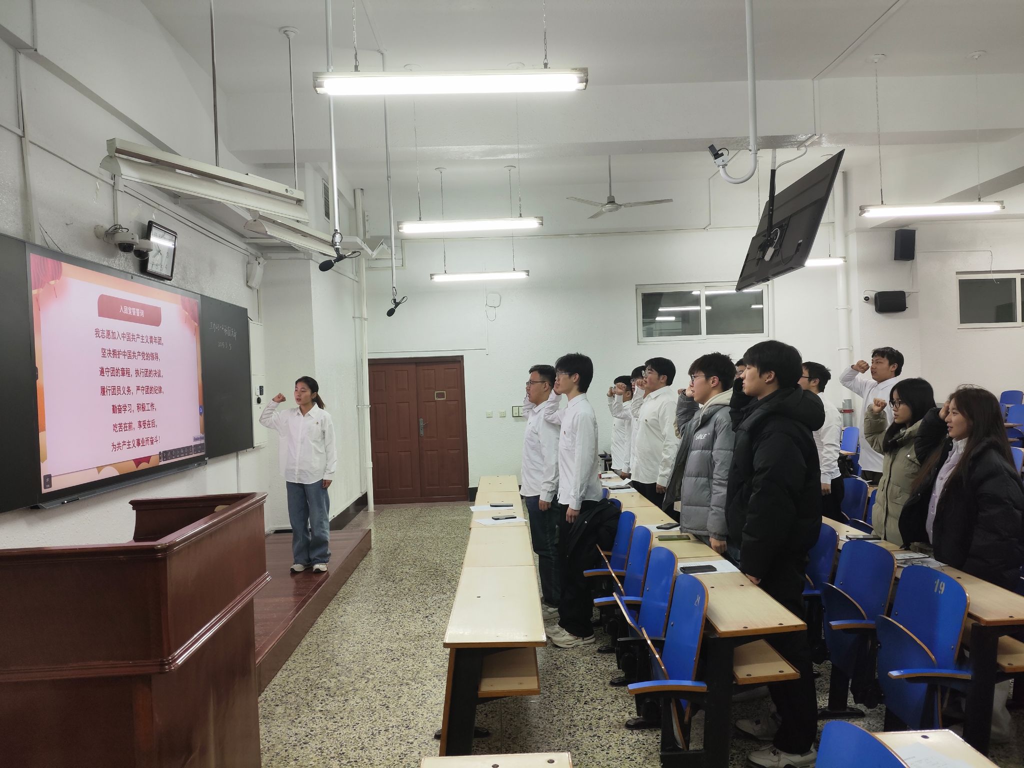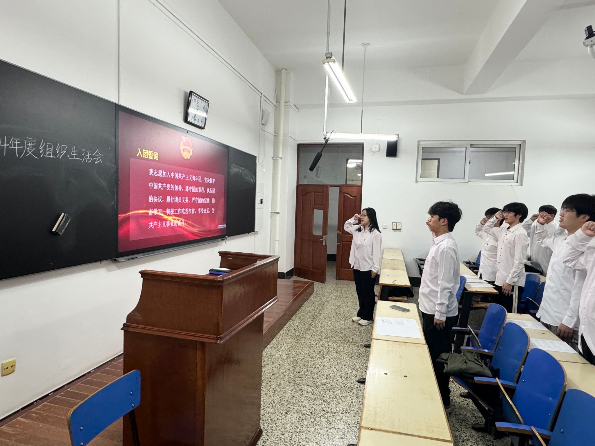 民主评议环节,大会采取个人自评、团员互评和组织评价相结合的方式开展了团员教育评议。会议接近尾声,由上级团组织负责人对此次会议进行评价和总结,并对团支部的规划作出建议。大会最后,全体参会人员重温入团誓词。