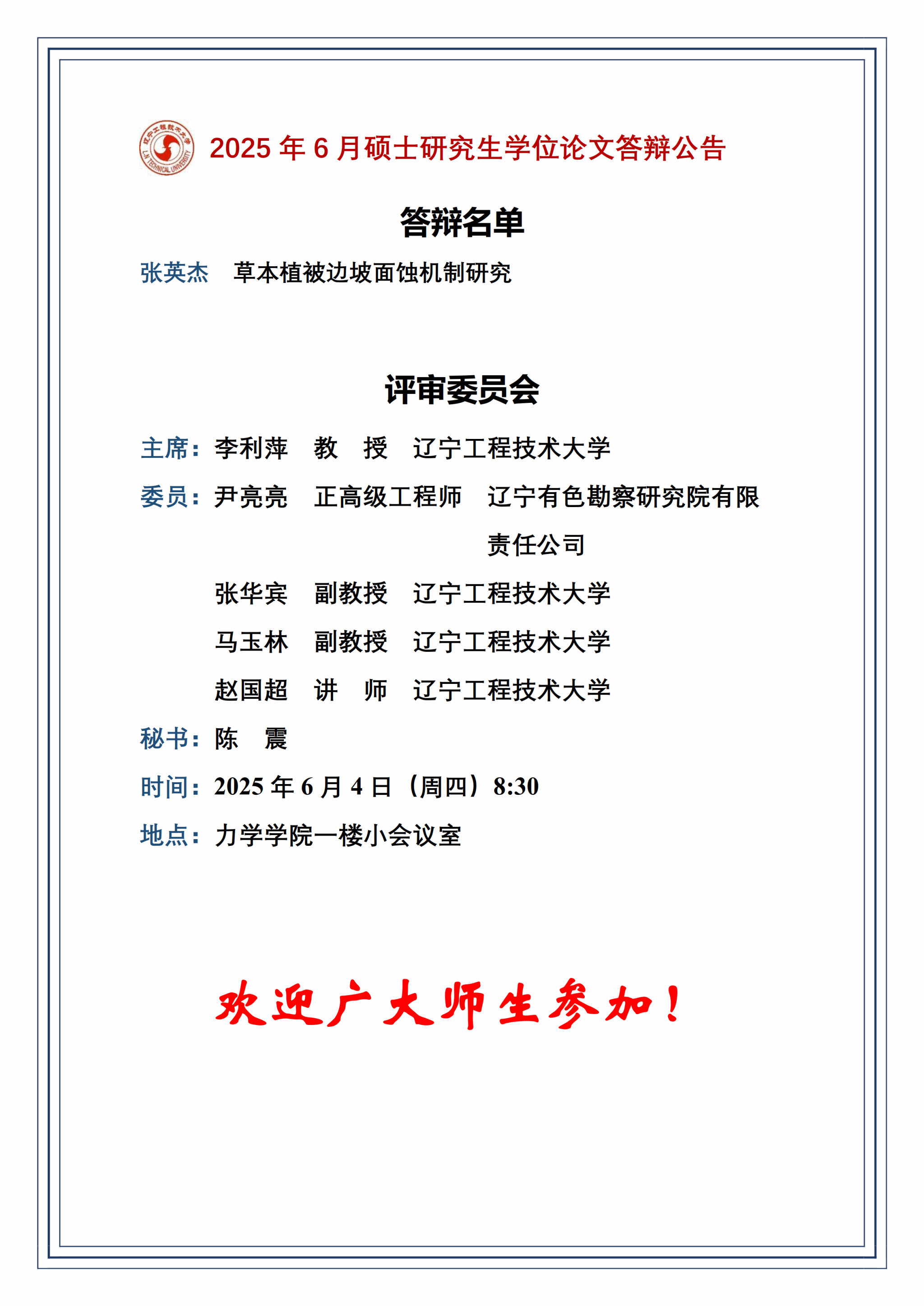 2025年春夏学期硕士学位论文答辩公告(环境岩土力学一组)