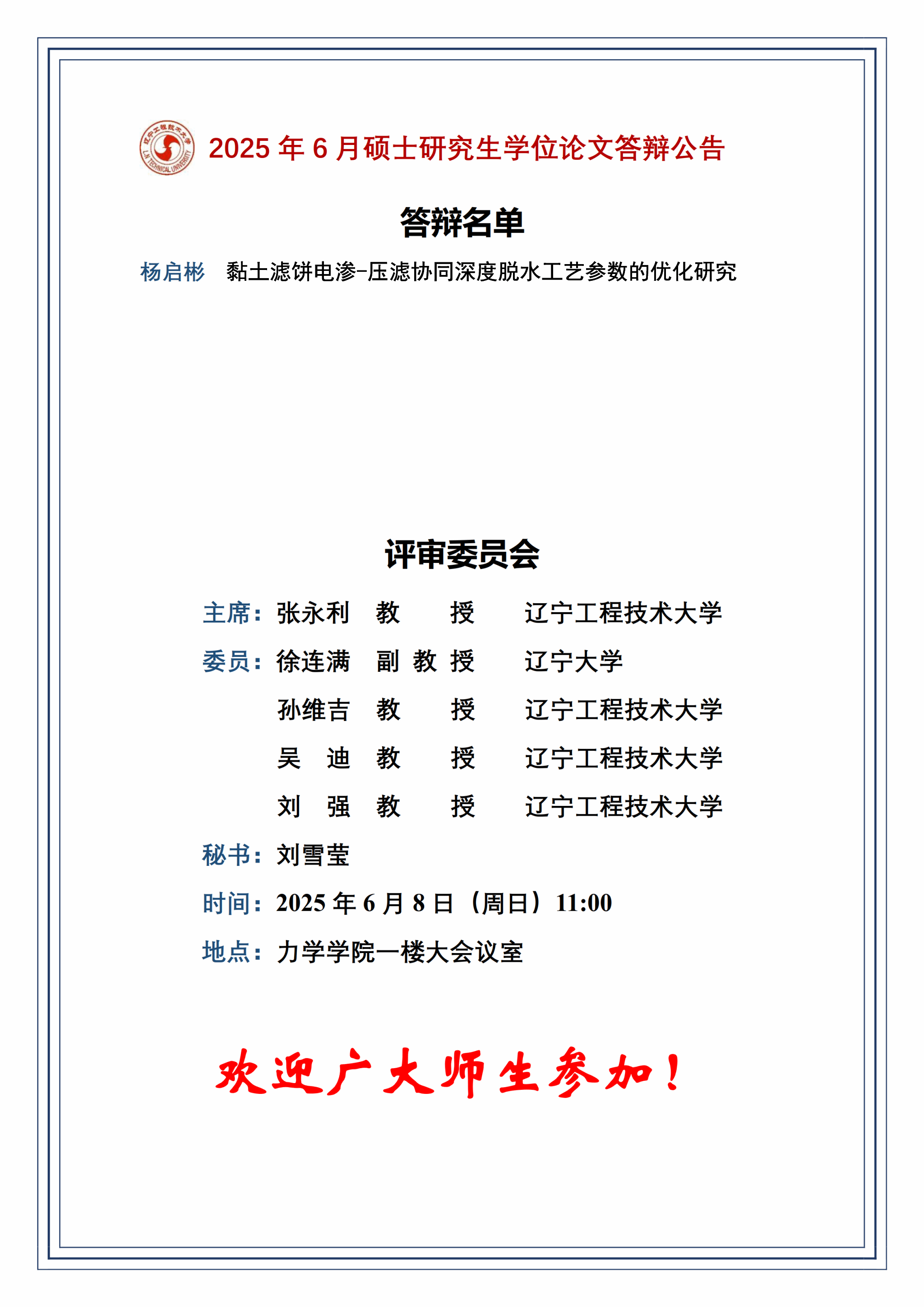 2025年春夏学期硕士学位论文答辩公告(流体力学三组)