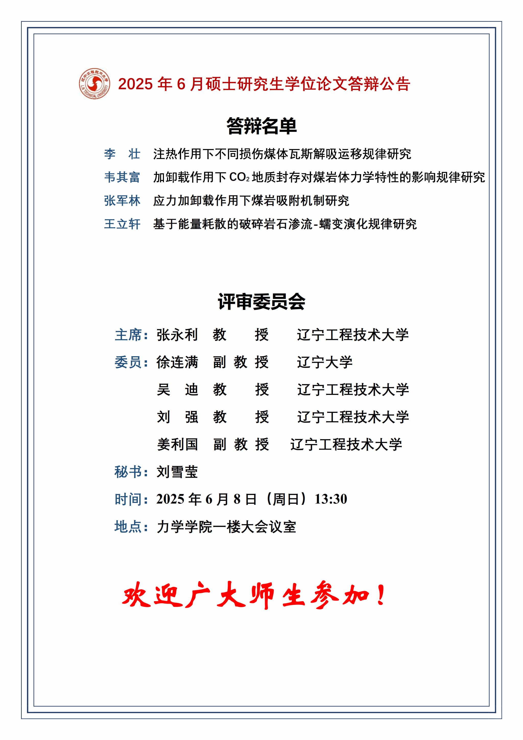 2025年春夏学期硕士学位论文答辩公告(流体力学四组)