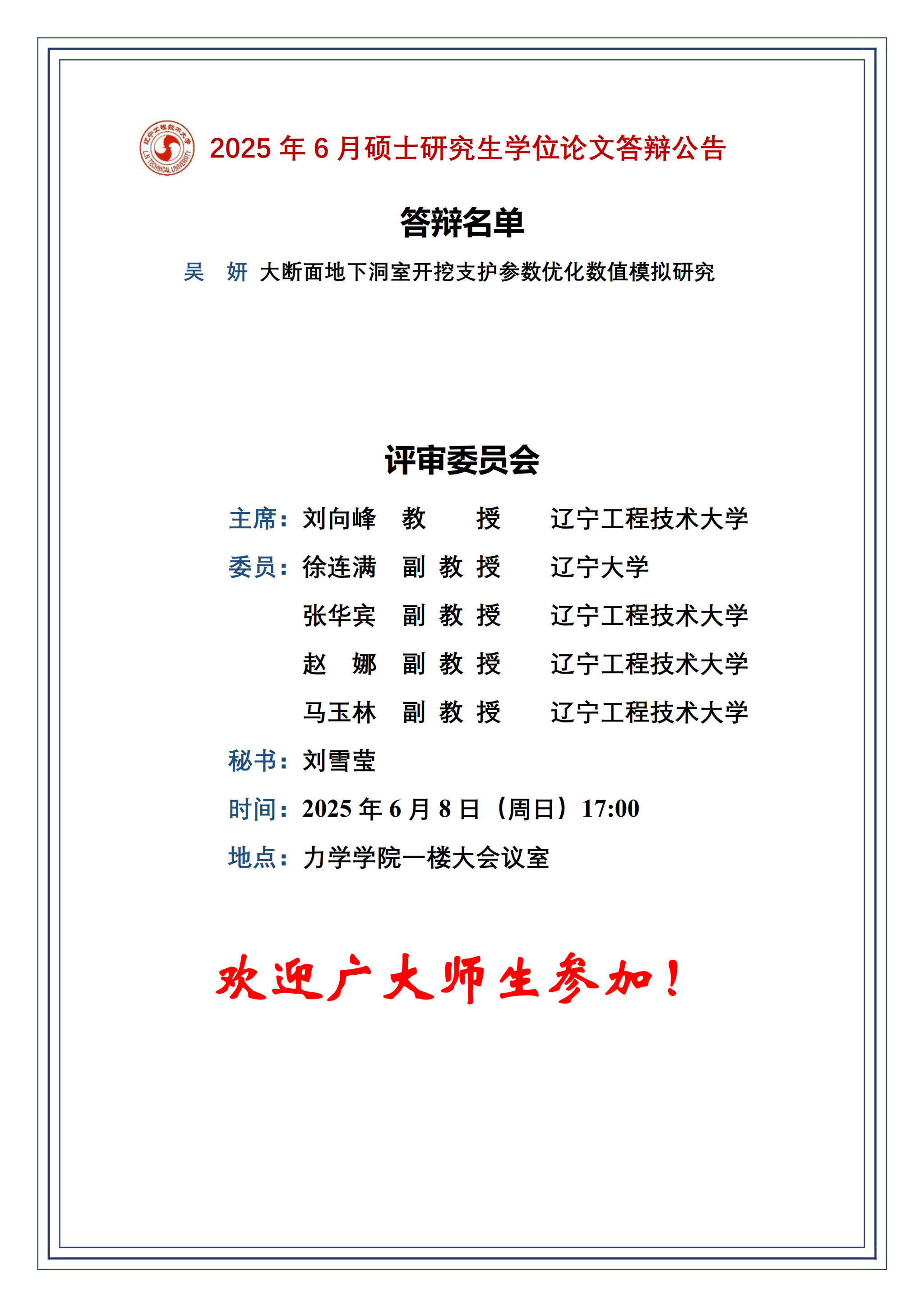 2025年春夏学期硕士学位论文答辩公告(环境岩土力学三组)