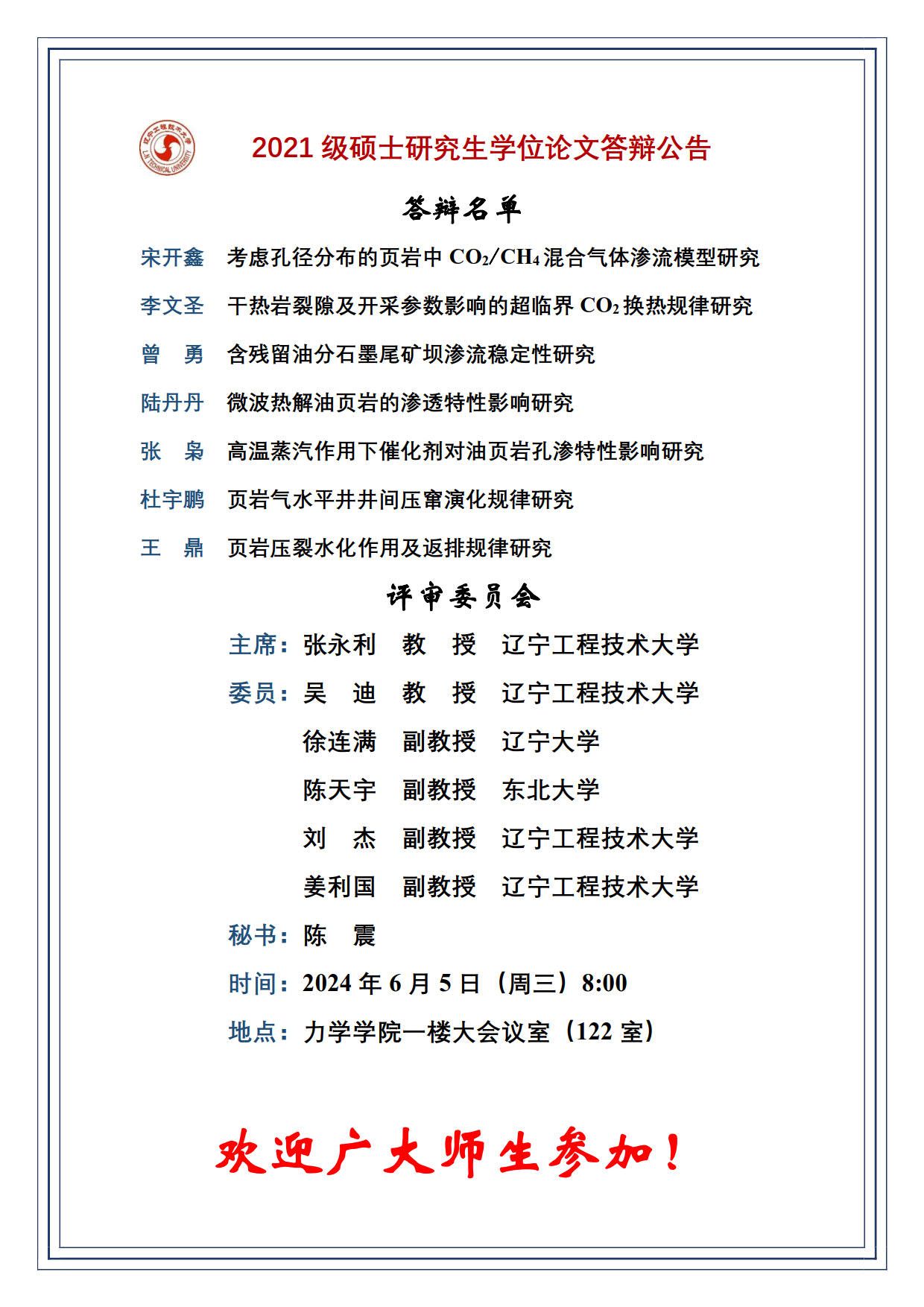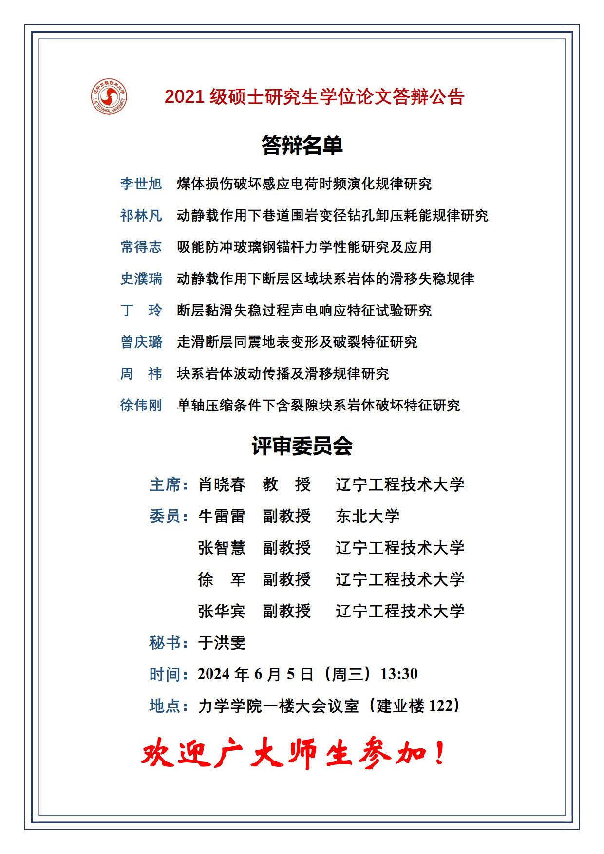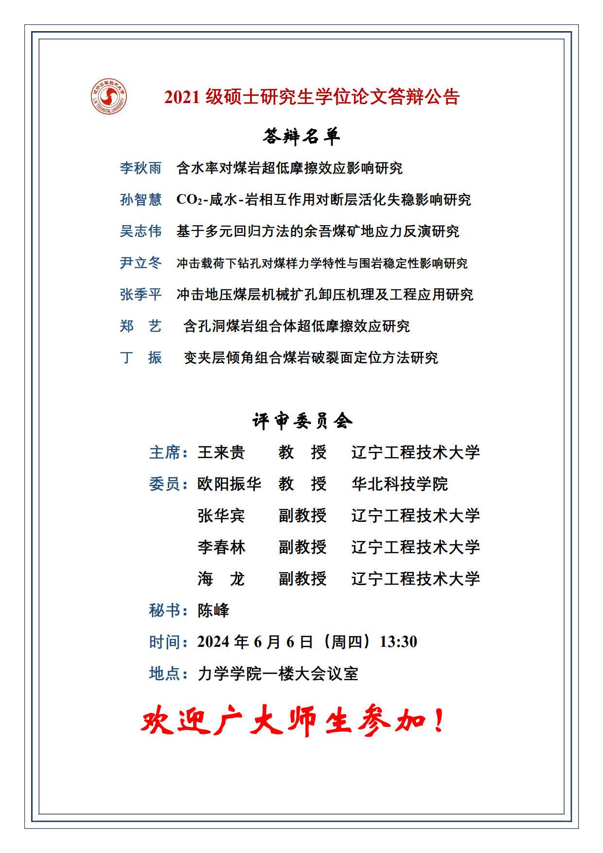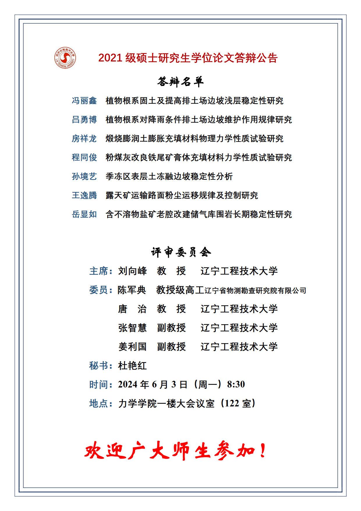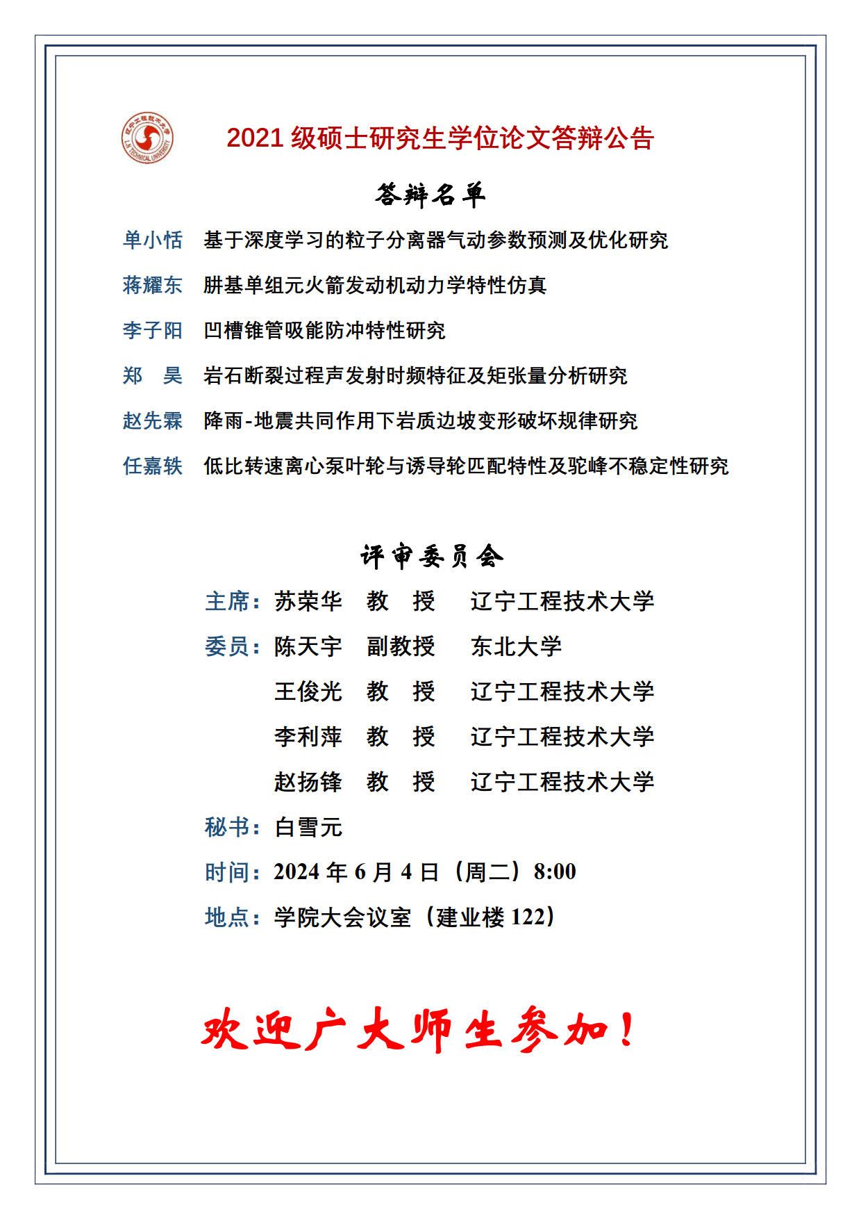 2024年春夏学期硕士学位论文答辩公告