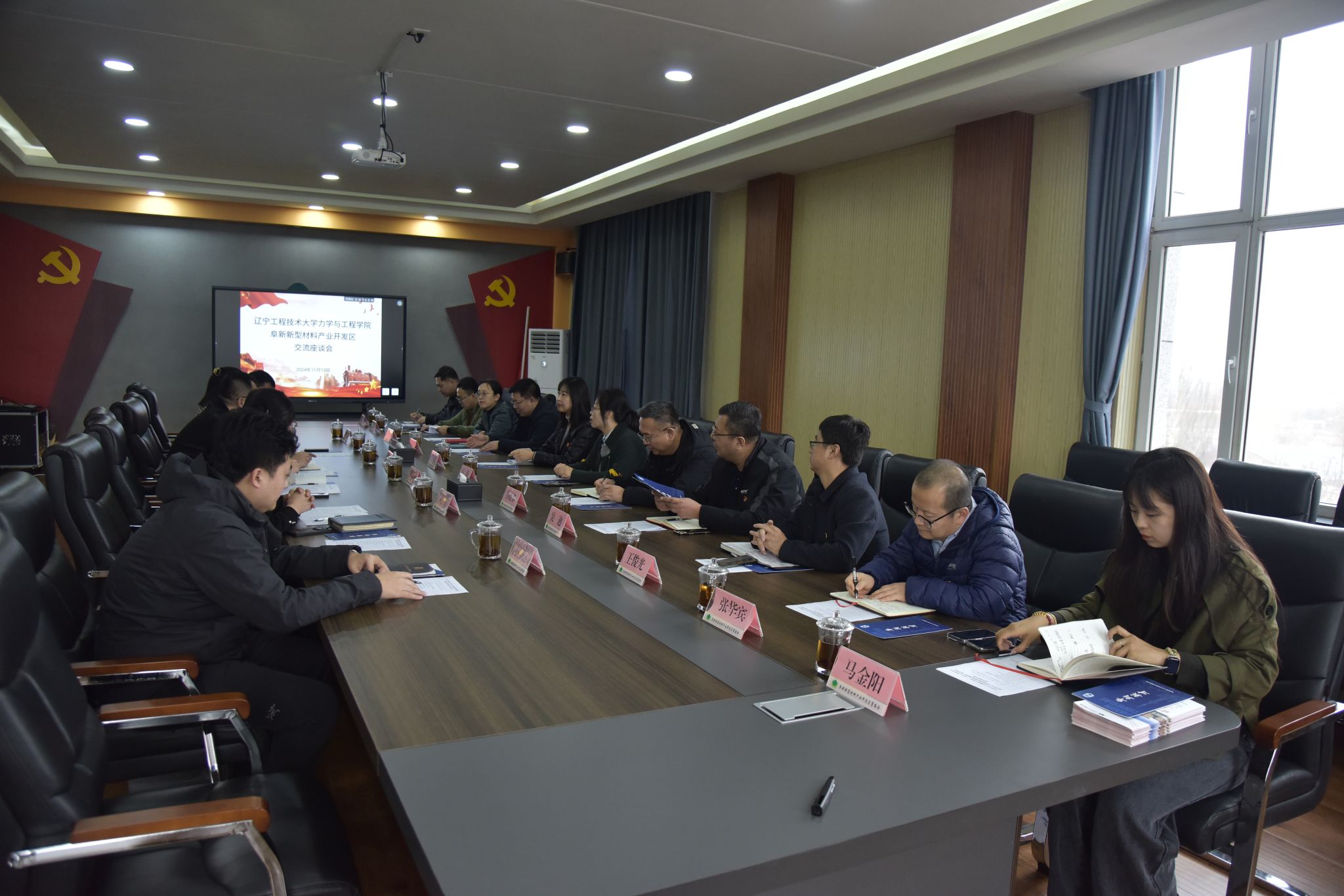 海角视频 领导班子、各系主任、党支部书记及教师代表与阜新新型材料产业开发区、区直相关部门负责人及企业代表在阜新新型材料产业开发区会议室进行了座谈交流。