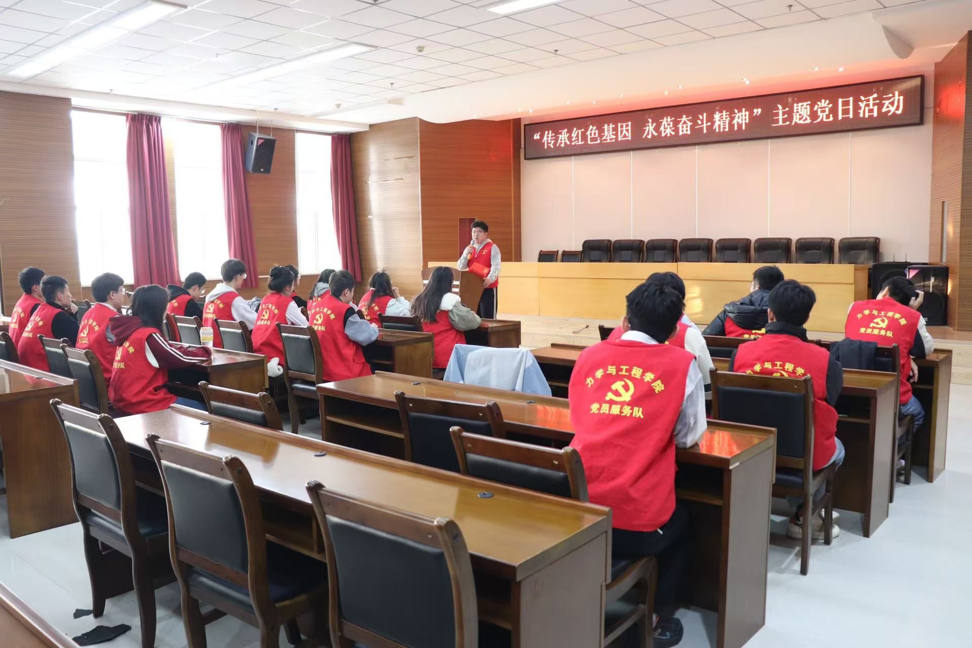 本次主题党日活动激励同学们在新时代继续发扬艰苦奋斗、勇于担当的精神,引领青年学生不断加深学习和实践,努力做到“学以致用,知行合一”,以坚定的理想信念,涵养进取品格,练就过硬本领,以奋斗姿态激扬青春梦想。
