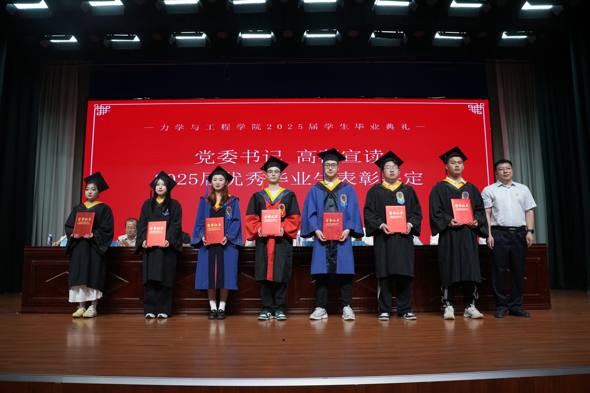 毕业典礼结束后,“逐光而歌 乘风好去”文艺演出拉开帷幕,在嘹亮而又熟悉的校歌旋律中,2025届毕业生毕业典礼暨文艺演出圆满落下帷幕。本次活动不仅是青春骊歌的唱响,更是力学薪火赓续相传的崭新篇章。愿毕业生们从母校启航,带着“力学”的坚韧与智慧,以奋斗之姿报效家国,在更广阔的天地间,书写更壮丽的篇章。