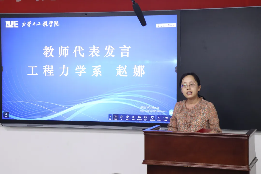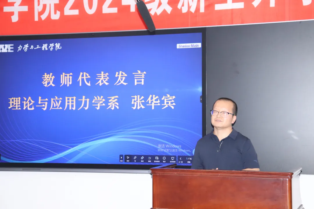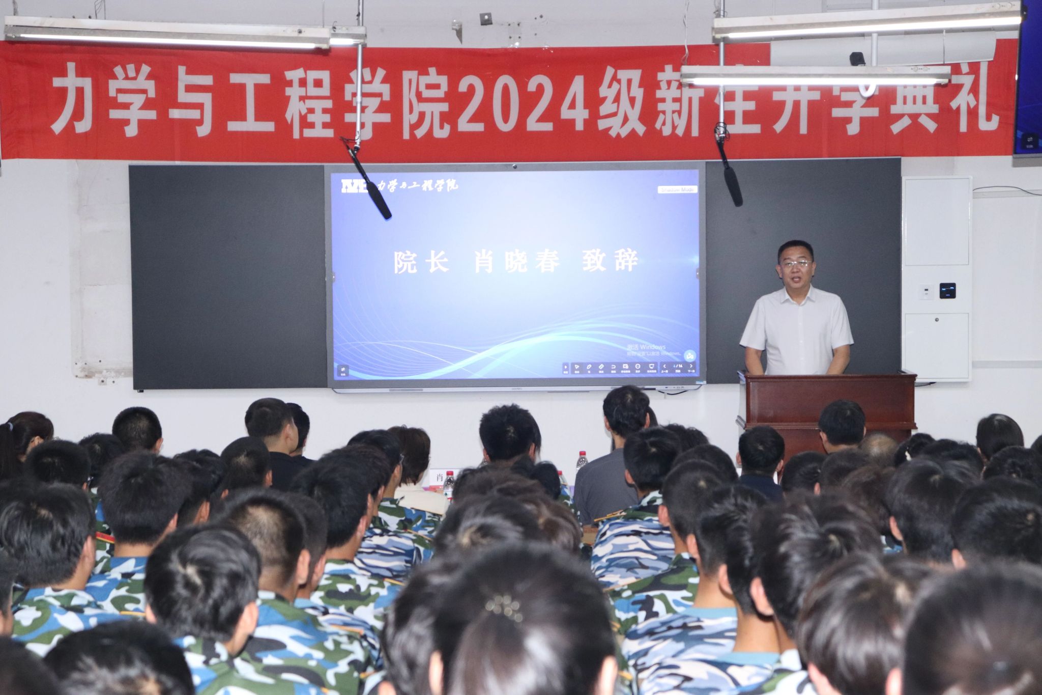 教师代表依次上台为新同学们送上开学寄语。研究生导师代表孙维吉副院长强调了教育的重要性,鼓励新生追求卓越,不断探索和创新。工程力学系主任赵娜、理论与应用力学系主任张华宾、新能源与科学系主任刘强分别发言,介绍各专业的同时分享各自的教学科研经验,鼓励新生珍惜大学时光,积极实践,团结协作,培养学术思维和坚韧性格,为实现个人梦想和国家需求做好准备。