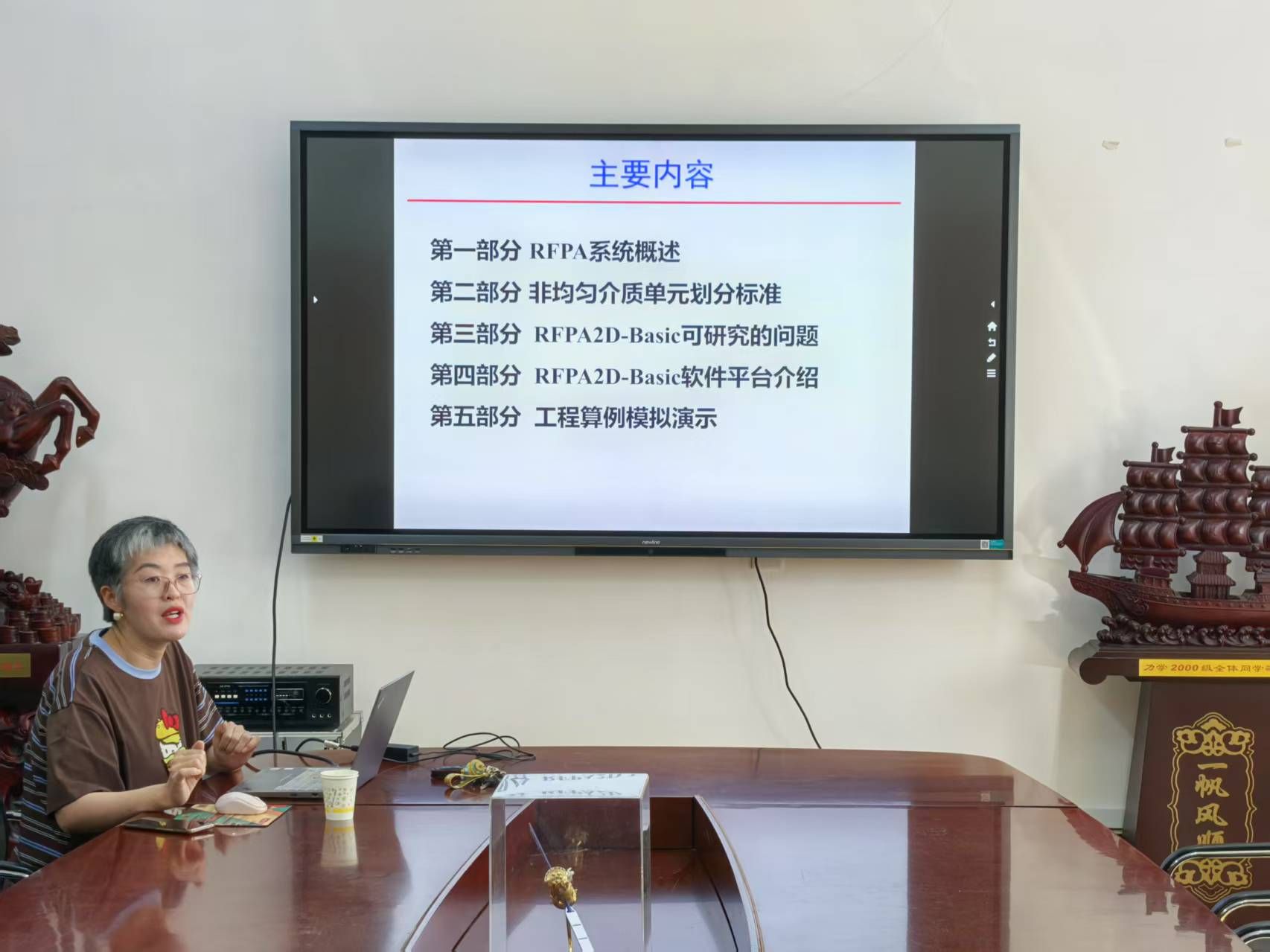 杜艳红围绕RFPA系统展开,讲解其基于有限元应力分析与统计损伤理论,可模拟材料破裂全过程,介绍非均匀介质单元划分标准,阐释RFPA2D - Basic在脆性材料受载分析、工程应用场景及软件操作,还通过数值试验演示技术应用。