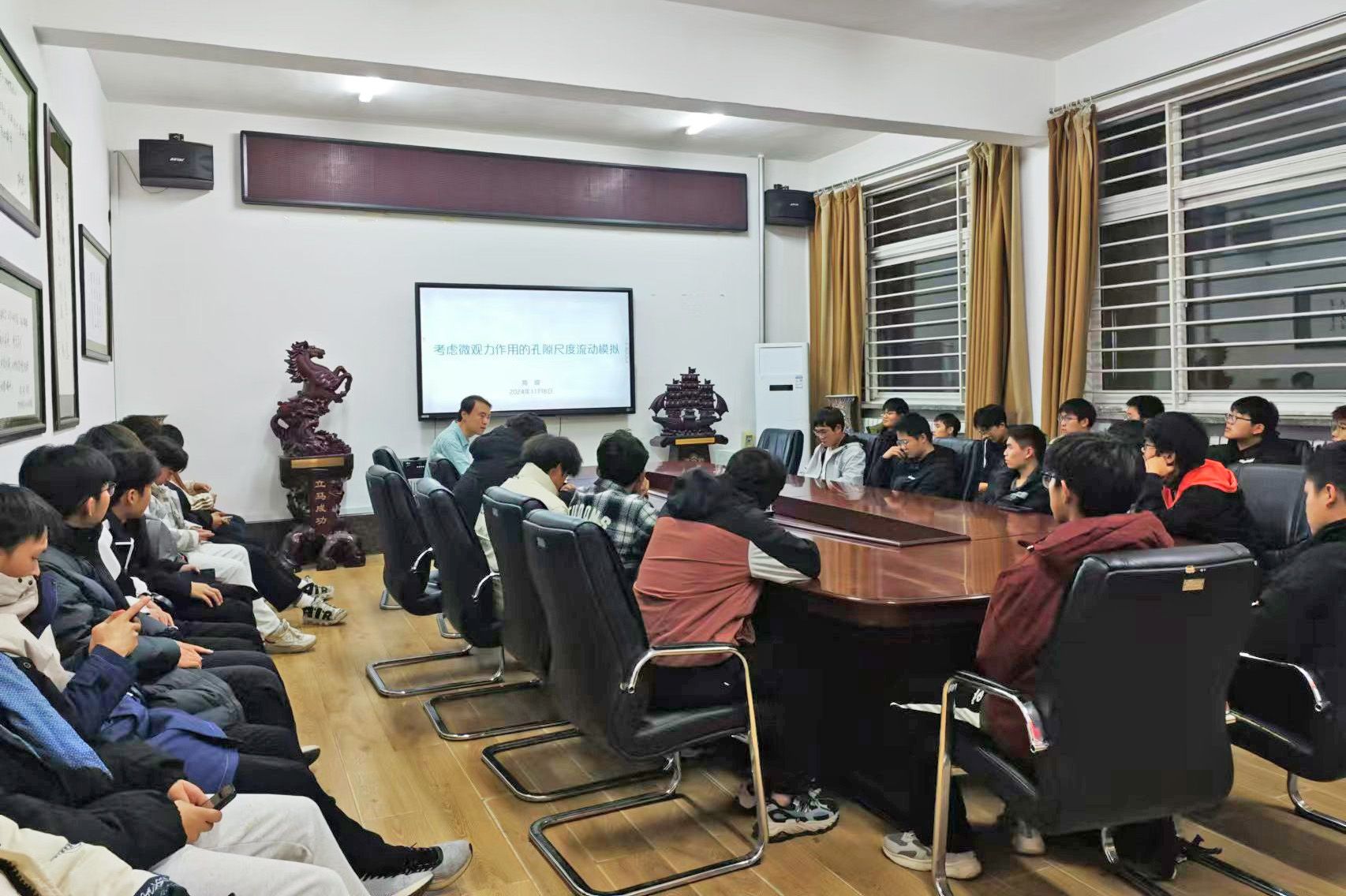 于11月8日在建业楼会议室开展了以《考虑微观力作用的孔隙尺度流动模型》为题的科研讲座,本次科研讲座由陈震老师主讲。