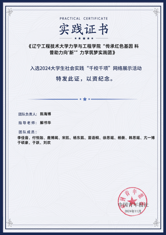 ★ 获“辽宁省大学生《理论力学》《材料力学》竞赛”一等奖1项、二等奖5项。